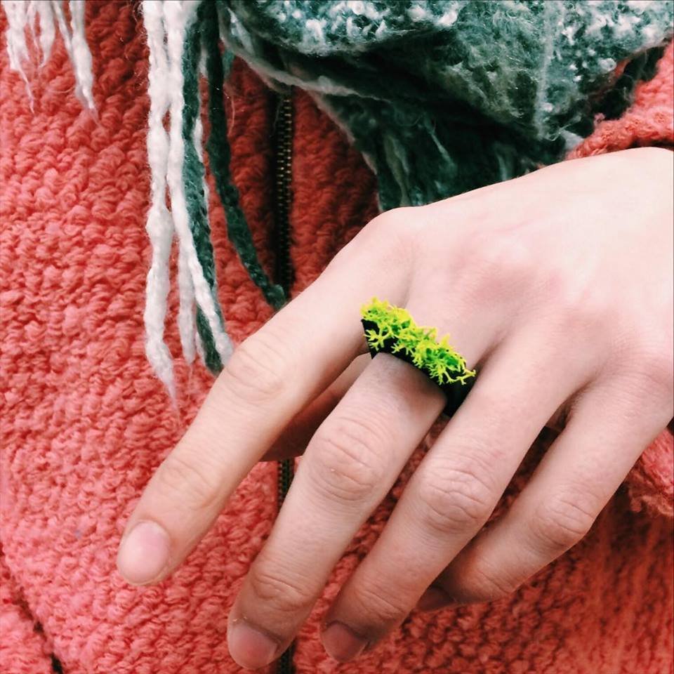 Jelenleg három fajta növény található meg az ékszereinkben: tillandsiák, kövirózsák és zuzmók. Talán a tillandsiák a legkevésbé ismertek ezek közül, ők a levegőgyökeres növénykék, melyek nem igényelnek táptalajt, a leveleiken található „szőröcskék”-en keresztül veszik fel a nedvességet és a tápanyagokat. Kövirózsával szerintem már mindenki találkozott, mi az apróbb fajtákkal dolgozunk természetesen. Ők egy moha alapú talajban kerülnek az ékszerekbe. A zuzmók már tartósítva vannak, így nekik csak ritkán van szükségük egy kis öntözésre, hogy megőrizzék a rugalmasságukat.