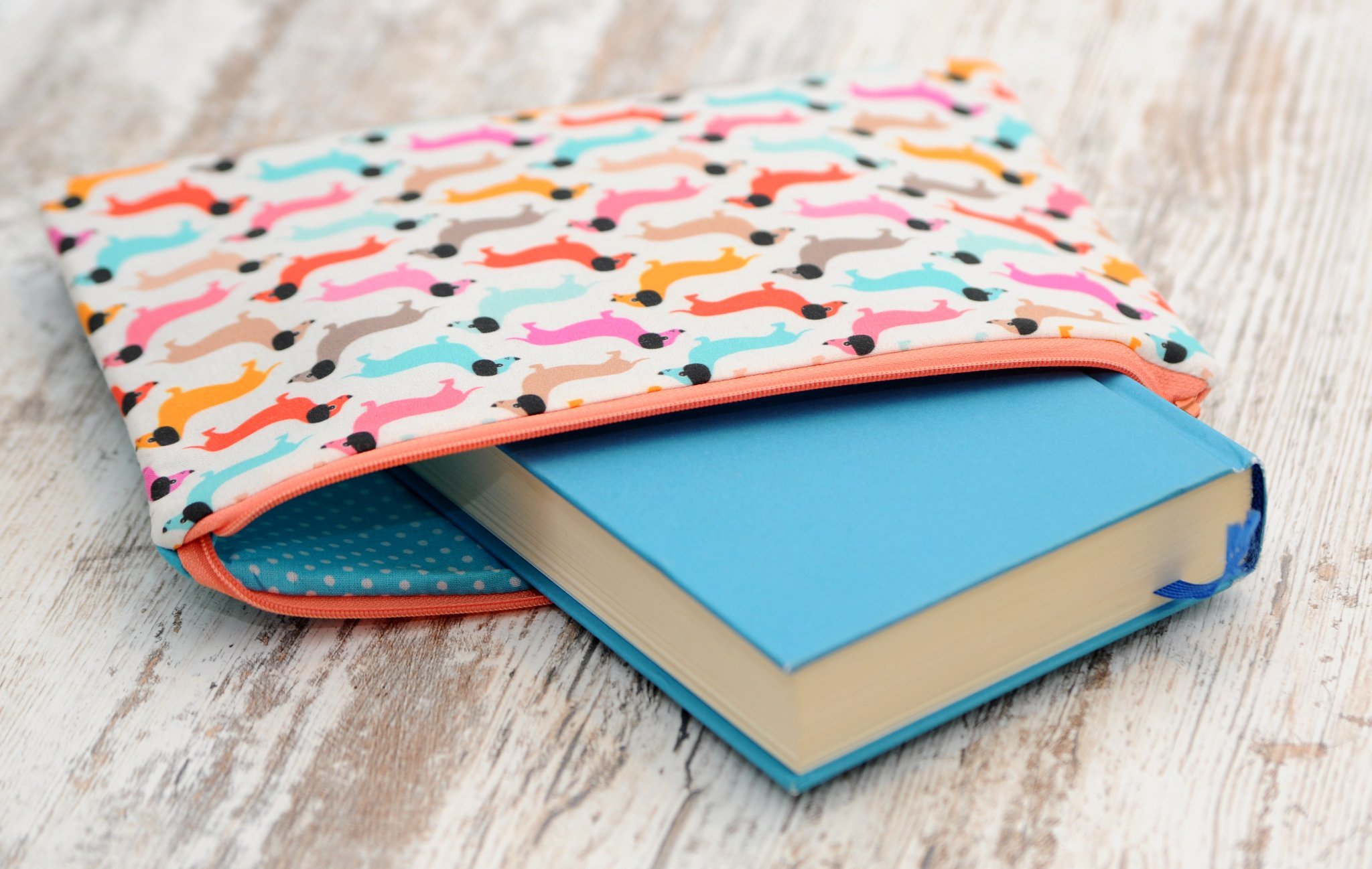 Táska kiegészítőim még a neszesszer és a kártyatartó. És a könyvkabát! Nagyon kedvelt, keresett termék, főleg ajándéknak vásárolják. Színes, mintás textil anyagokból készítem őket puha belsővel, hogy megóvják a könyveket. Érkezik még egyedi megrendelés mobil, tablet és csekk tartóra is a hologramos anyagokból.